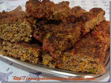 Assar até que enfiando um palito no bolo não saia líquido. Servir com legumes passados na margarina e batatas palhas.